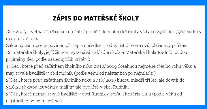 Dne 7.5. 2018 bude v mateřské škole zúžený provoz. Základní škola má ředitelské volno a školní jídelna tento den nevaří - proto bude strava dovezena od jiného dodavatele.